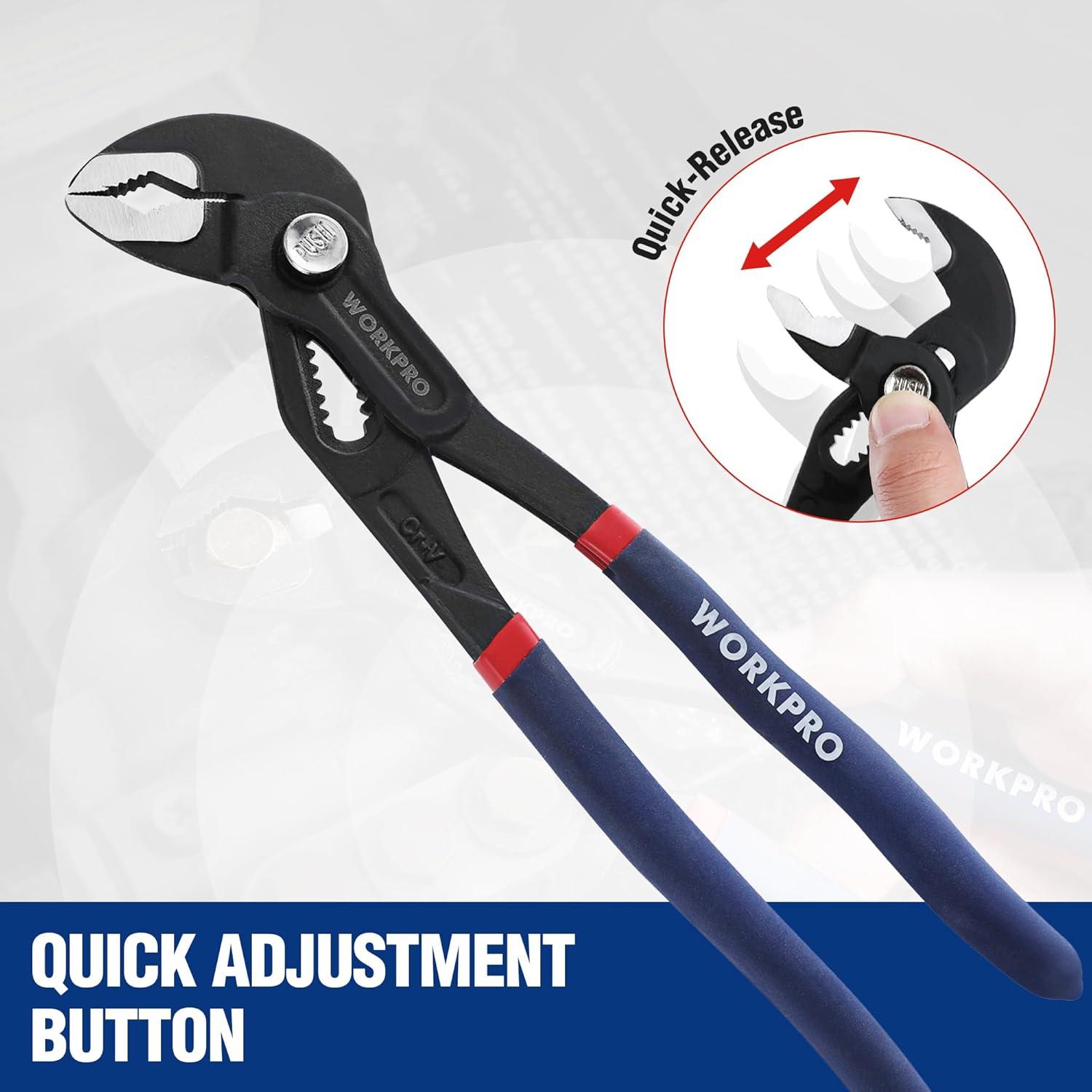 WORKPRO 10-Inch Groove Joint Pliers, Fast Adjust Tongue and Groove Pliers, V-Jaw Water Pump Pliers with Comfort Grips(7 & 10-Inch)