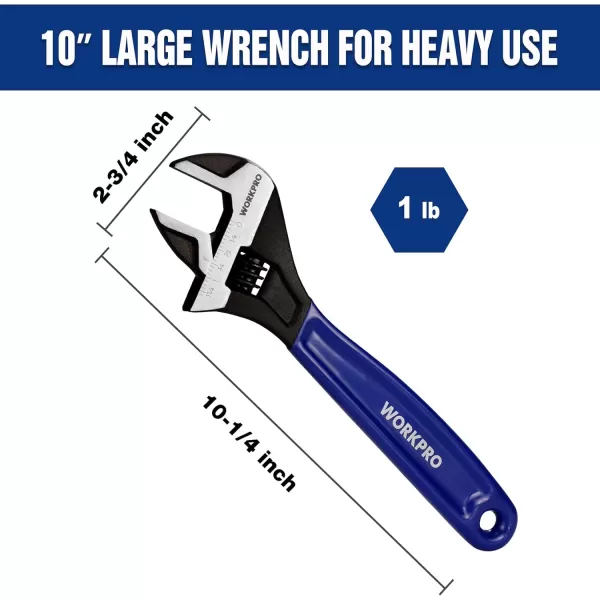 WORKPRO 2piece Adjustable Wrench Set 6Inch amp 10Inch Wrenches Wide Jaw Black Oxide Wrench With Cushion Grip Metric amp SAE Scales CrV Steel for Home Garage Workshop10 inch
