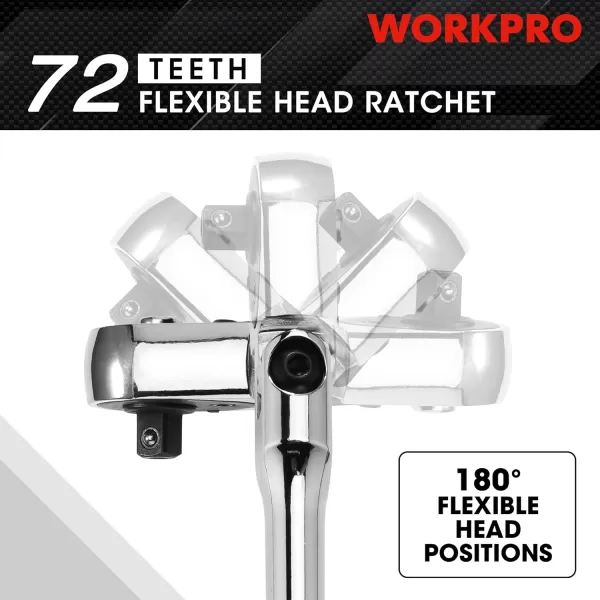 Ready Made: The WORKPRO flex head ratchet is available in two different sizes, including 1/4″ and 3/8″ sizes, you can choose the size according to your need. These ratchet handles are made of durable alloy steel with a bright chrome-plated surface, and the rotating head is made of Cr-Mo, which has more powerful torque than other ratchets. The 1/4″ ratchet is 6.7″ long, the 3/8″ ratchet is 9.5″ long.
