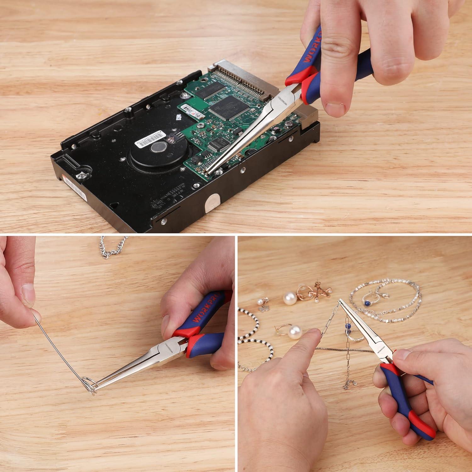Wide Application: WOKRPRO needle nose pliers excel in snipping, wrapping, bending, straightening, and shaping for jewelry, clocks, wires, guitar, and watch repairs. From jewelry making to watch repairs, they're invaluable for a wide range of crafting projects