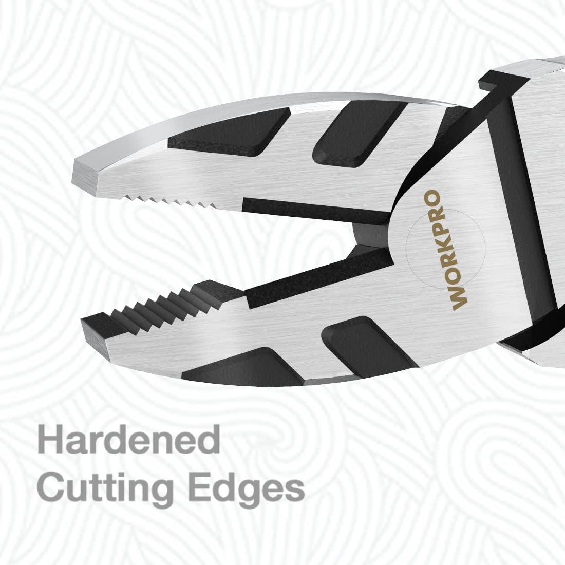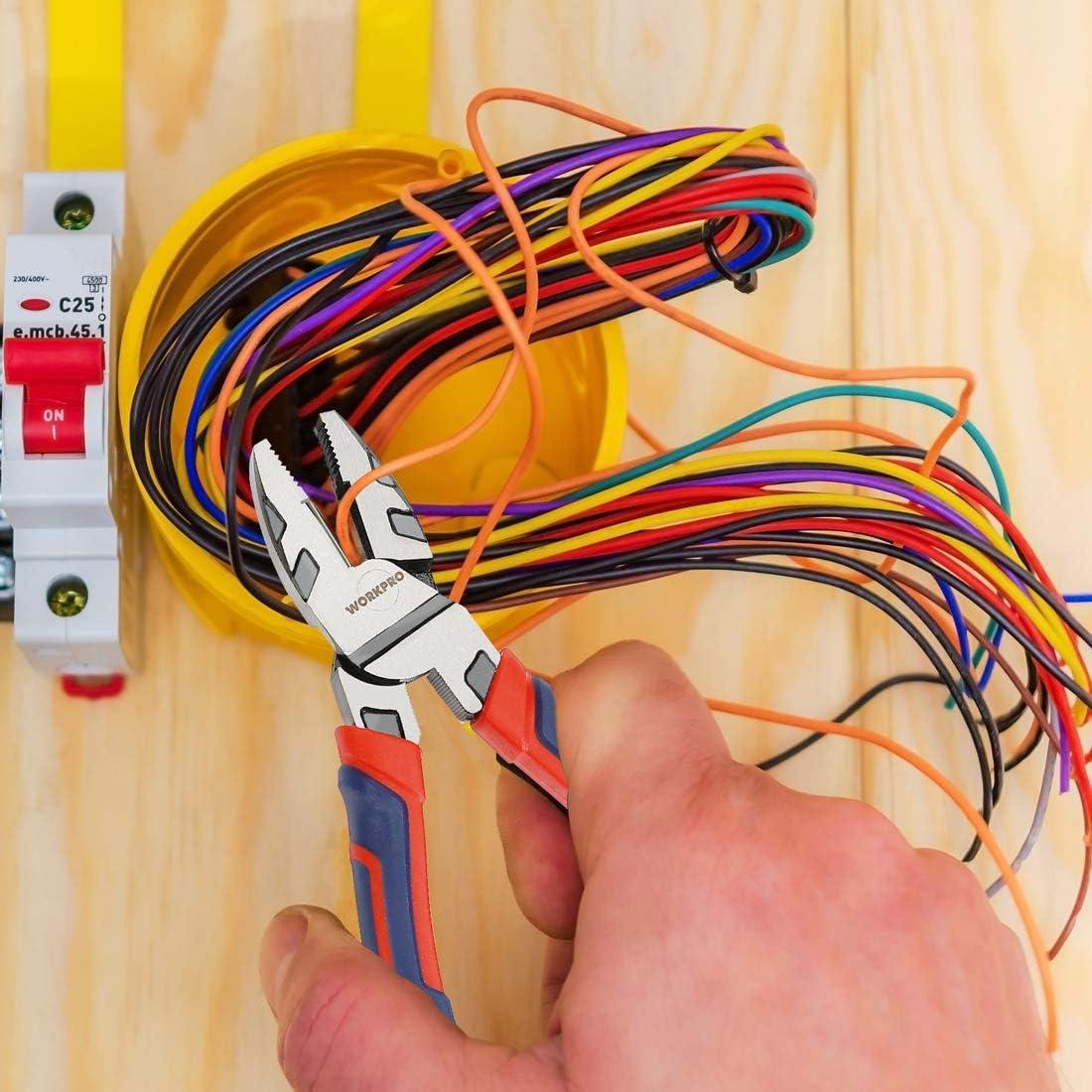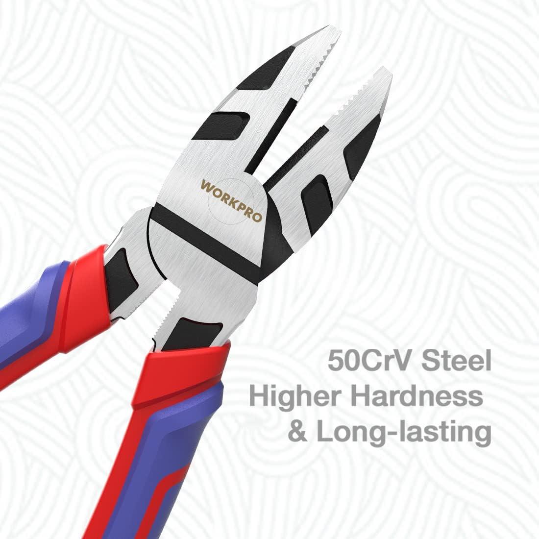 WORKPRO 8-Inch Linesman Pliers in CRV Steel for Twisting and Cutting Wires, Clamping Screws