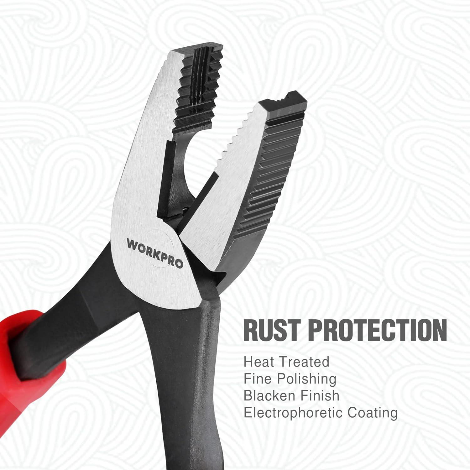 Heavy-Duty & Rust-Protection: These engineer pliers are made of heavy-duty chrome vanadium steel and processed with 5 boost crafts to improve their hardness and durability. Heat-treated hardness up to 48 HRC, high-frequency treated hardness up to 65 HRC. (find more in A+ content below)