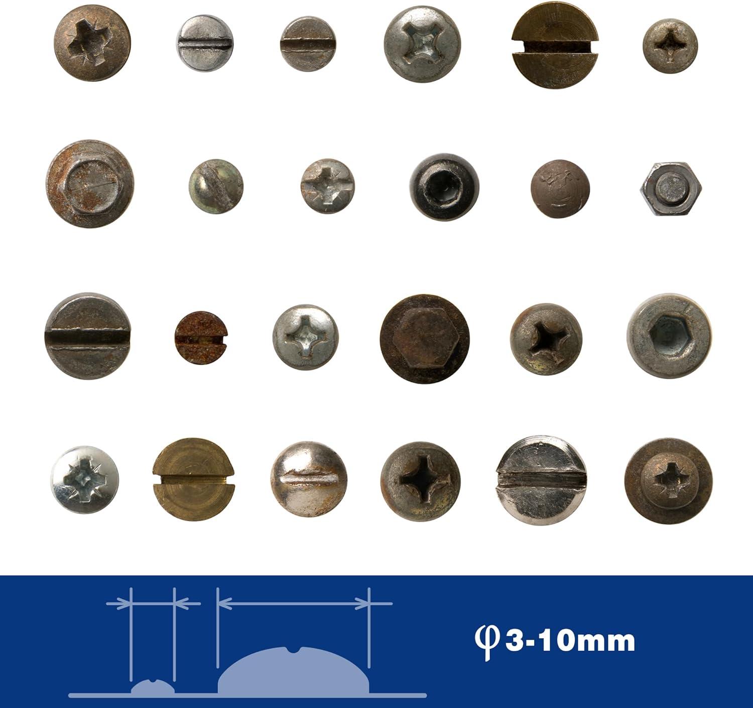 Approximate Removable Screw Size: Screw head diameter 0.1 – 0.4 inch (3 – 10 mm) (truss screw: M2 – 4 / Pan screw: M1.6 – 5)