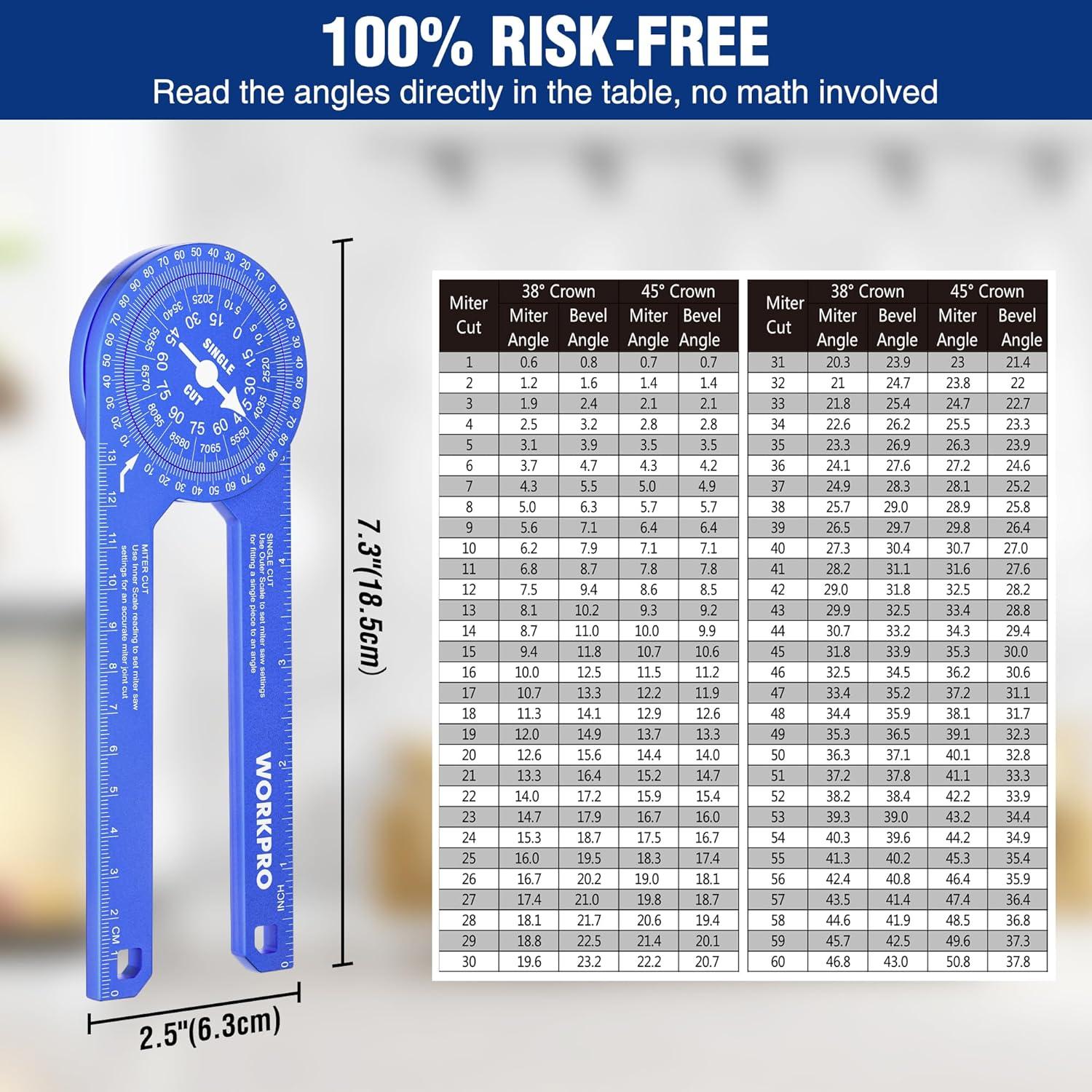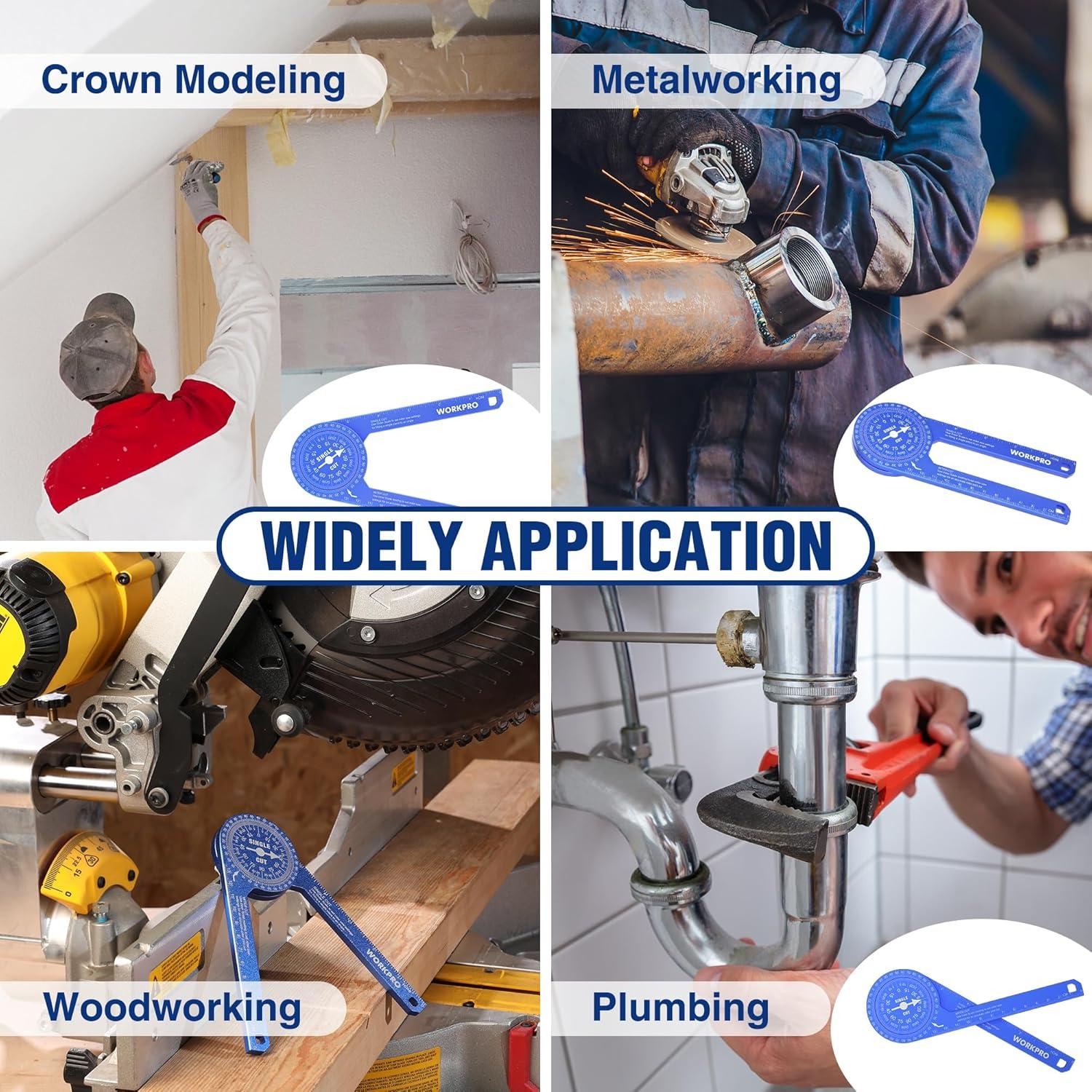 Wide Application: Whether you are a professional or not, WORKPRO Miter Saw Protractor is excellent for you. It is suitable for crown molding, miter cuts, carpentry, plumbing, metalworking, DIY projects and more
