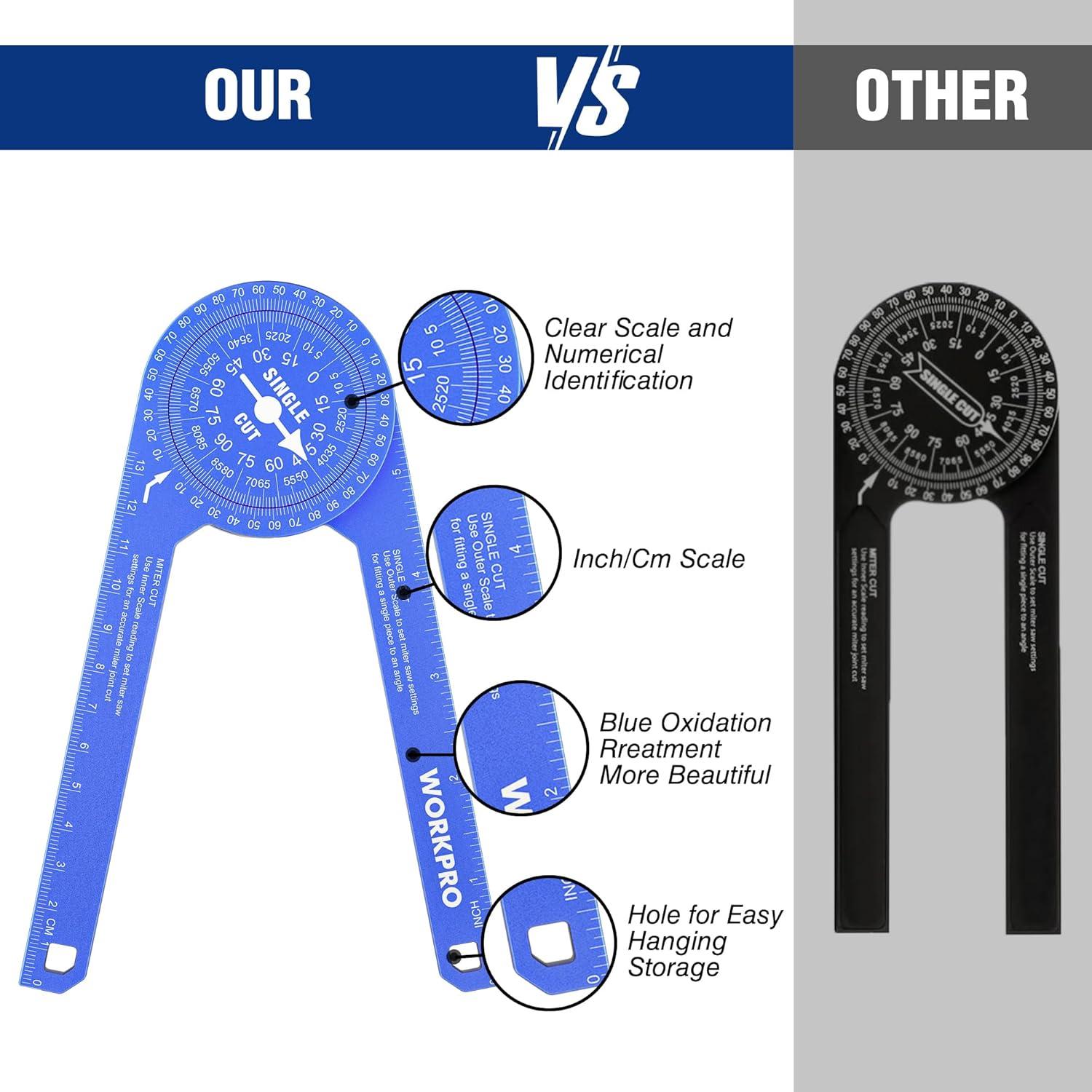 Easy to Carry: WORKPRO Miter Saw Protractor is made of lightweight aluminum alloy, which has great corrosion and wear resistance, extending the lifespan. Also, its small size and lightweight material makes it easy to carry