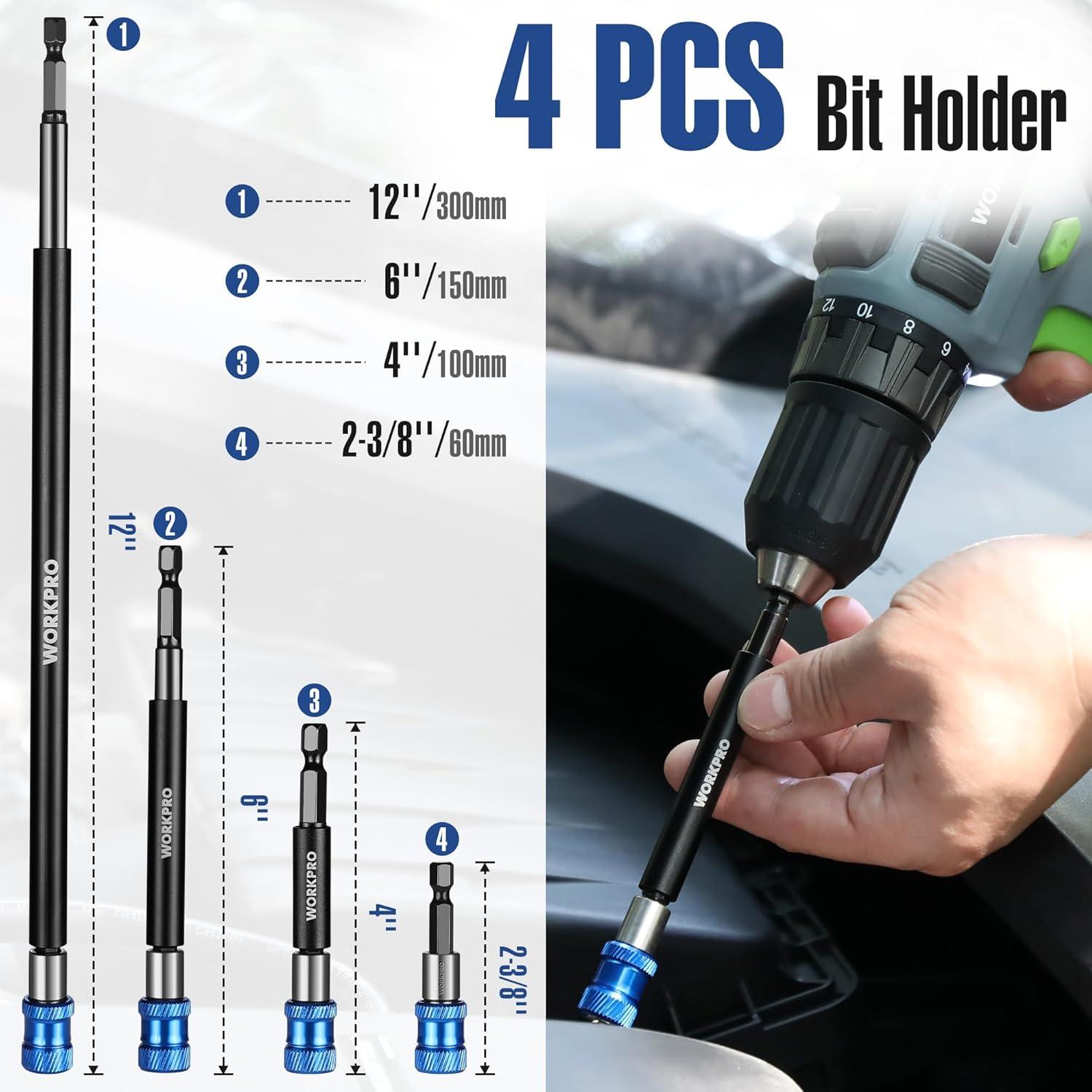 VERSATILE LENGTHS: Enjoy exceptional flexibility with the 4-Piece drill bit extension set, which includes sizes of 2-3/8″, 4″, 6″, and 12″. These various lengths are ideal for a wide range of tasks, from simple home projects to complex professional jobs, ensuring you have the perfect tool for every scenario