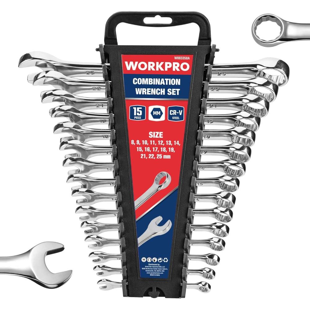 COMPLETE METRIC WRENCH SET, including both large and small metric standard sizes from 8 to 25 mm with a storage rack: 8,9,10,11,12,13,14,15,16,17,18,19,21,22,25mm