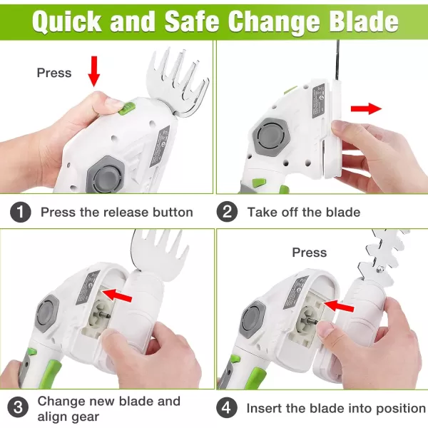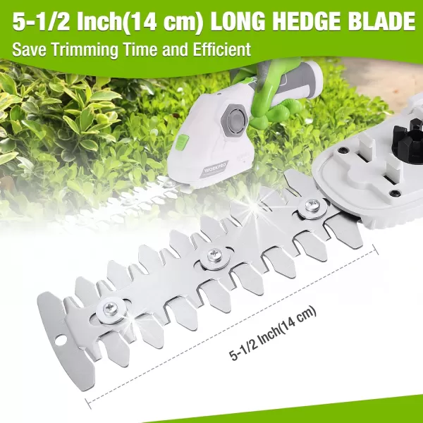 High Performance: 2-in-1 design makes the switch from mowing to hedgerow quick and easy (5-1/2 inch long shrub shear & 3-1/2 inch wide grass shear). 1100rpm no-load speed is able to provide high power for best cutting results, which is perfect for Trimming & Pruning: Grass, Branches, and Shrubs. The hedge trim blades – best suitable for less than 7.8mm thickness branches