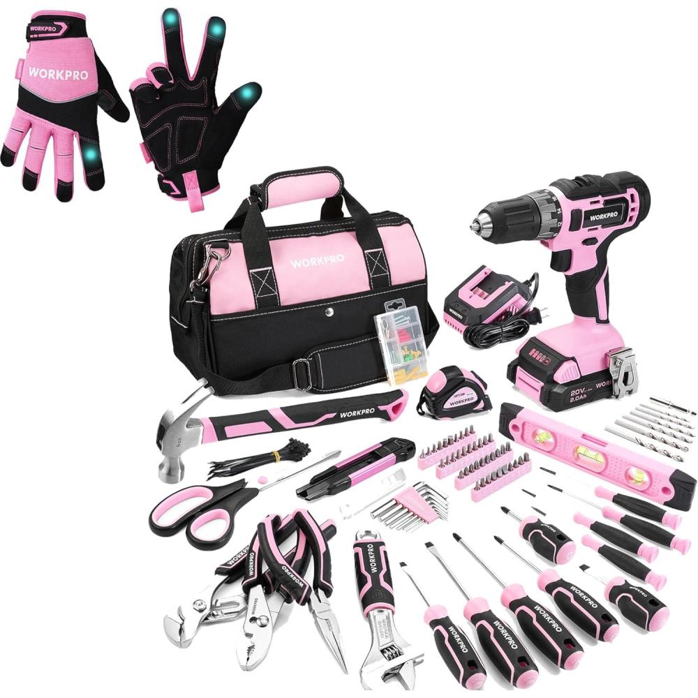 Pink Home Tool Kit – This pink tool kit includes all useful and necessary home tools for apartment repair. Contains drill driver, hammer, and other basic tools kit. Great gift for man and ladies